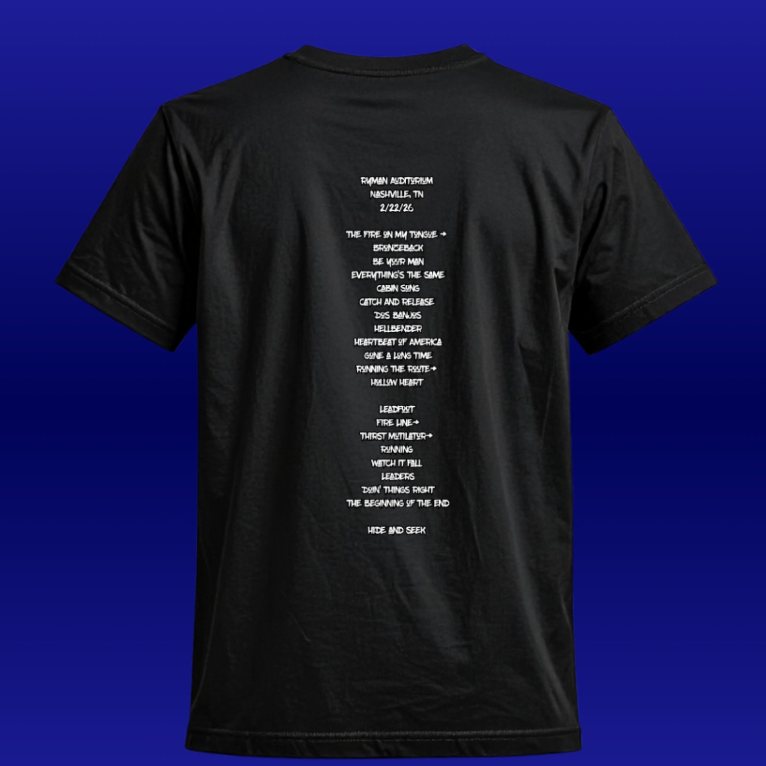 Classic Ryman stained glass windows with band instruments on front and Full Setlist on back.
