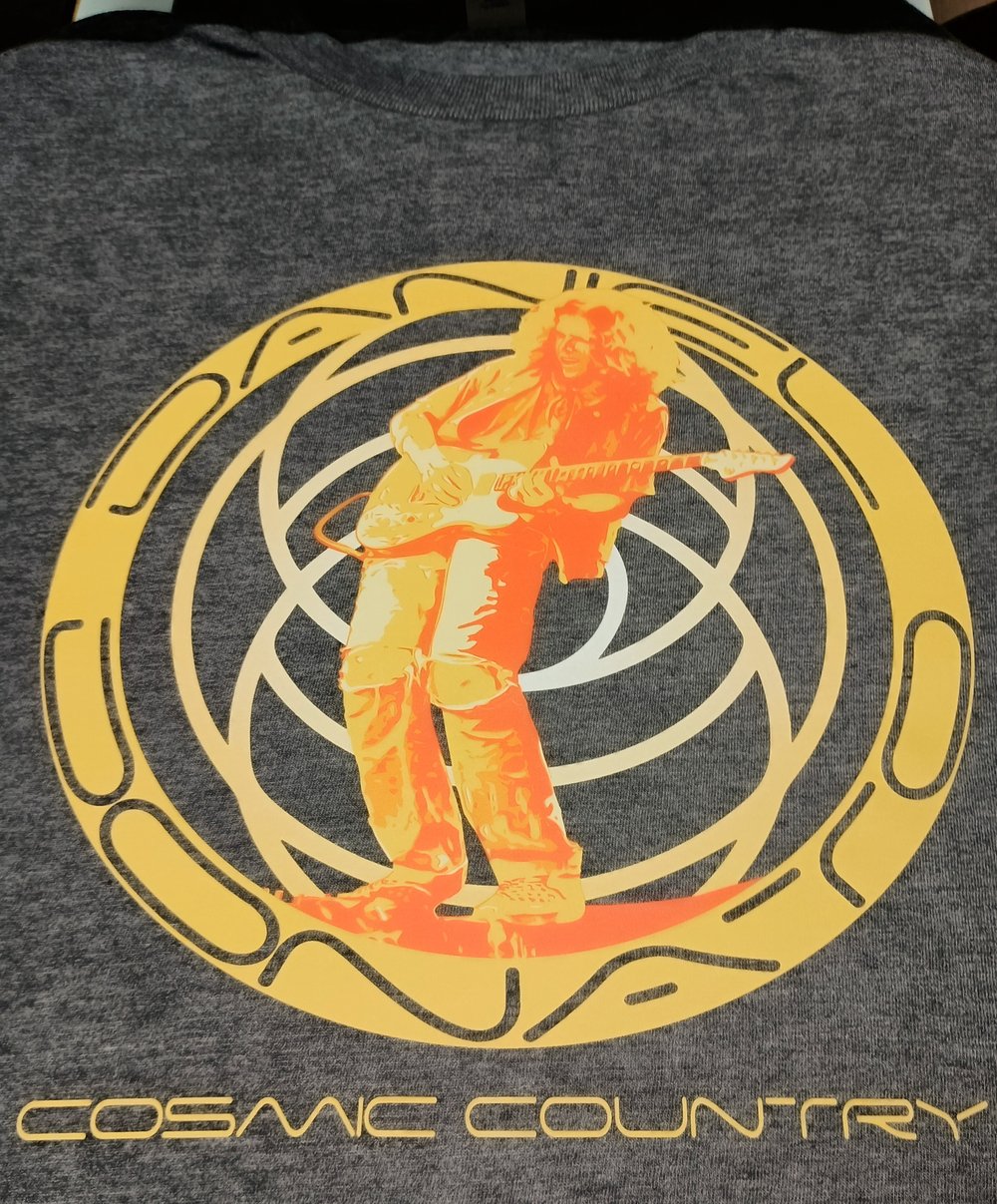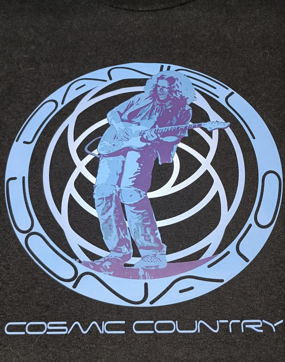 Black tee/blue art