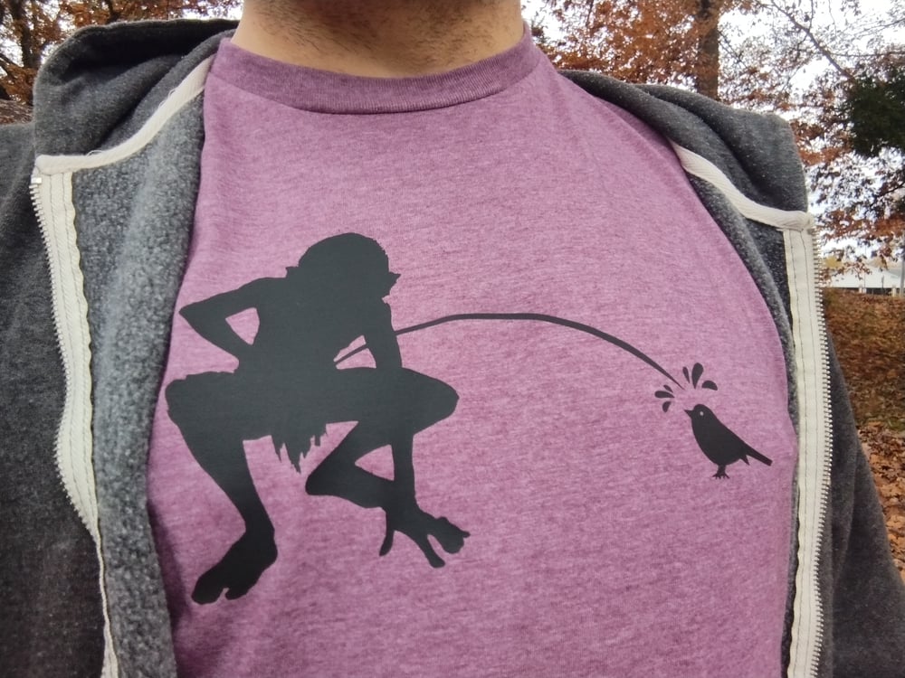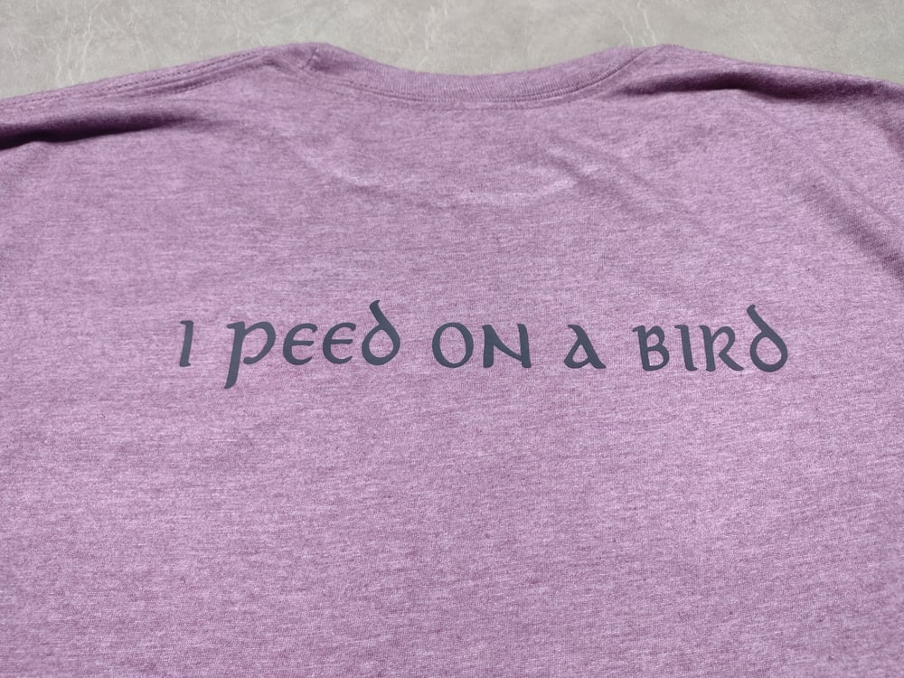 "I PEED ON A BIRD" lyrics on back or front optional.